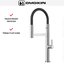 Для использования режима душа смесители оснащаются, как правило, выдвижным изливом, который имеет насадку-душ. В конструкцию у них добавляется элемент, который способен переключать направление струи с обычного излива на гибкий. Отдельный гибкий шланг вытягивается наружу за эту насадку из корпуса излива. Длина его может составить до 1,5 м, что поможет также вымыть все уголки раковины и наполнить емкости любого размера. Кроме смесителей с одним выдвижным изливом , производители предлагают полупрофессиональные модели с двумя изливами.