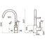 Смеситель классической формы — с плавным изгибом, который расположен на средней высоте относительно мойки. С ним комфортно мыть или наполнять глубокую посуду, при необходимости можно повернуть кран влево или вправо, например, чтобы не смешивать грязные тарелки с продуктами, которые нужно ополоснуть перед приготовлением.