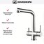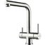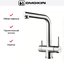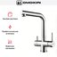 Для подачи чистой воды смесители могут оснащаться единственным рычагом, при помощи которого производится переключение на фильтр. Этот же рычаг регулирует напор и температуру водопроводной воды. Чаще на изливе имеются два рычага, один из которых отвечает только за включение фильтрованной воды.
