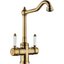 Рычаг для включения фильтрованной воды применяется в современных комбинированных смесителях, где из одного и того же излива подается и водопроводная, и питьевая вода. Такие смесители типа «два в одном» отличаются от обычных тем, что имеют не два подключения, а три, где третье соединяет смеситель с фильтром. Очищенная вода подается по изолированной трубке, проходящей внутри излива. Для удаления накипи, солей металлов, микроорганизмов и прочих вредных примесей могут применяться различные типы фильтров. Проточные фильтры устанавливаются под мойкой и включают несколько картриджей, которые необходимо менять по мере использования. С их помощью можно избавиться от таких примесей, как железо, хлор и многие другие. Устройства с системой обратного осмоса оснащаются диффузором, включающим картриджи для предварительной очистки и осмотическую мембрану, задерживающую практически все вредные примеси.