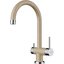 Отдельный канал для фильтрованной воды — опция, которой оснащаются многие смесители с фильтром. Это экономичный, удобный вариант, не требующий установки дополнительного смесителя или покупки бутилированной воды. Монтаж его будет таким же, как монтаж обычного крана, но потребуется, кроме подключения к горячей и холодной воде, еще одно дополнительное подключение — к фильтру. Система фильтров может размещаться под раковиной, в кухонной тумбе, и соединяться со смесителем при помощи гибкой трубки. Проточные фильтры позволяют задерживать соли металлов, защищают от болезнетворных микроорганизмов. В зависимости от качества воды картриджи в фильтрах требуется менять каждый год или чаще. Еще более эффективны фильтры с системой обратного осмоса, которые не пропускают до 98% посторонних примесей.