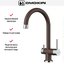 По высоте все смесители можно разделить на три группы: низкие, средние и высокие. Низкие обычно имеют один вентиль, а средние и высокие — по два. Высота низких смесителей составляет около 10-12 см, их выбирают для небольшой мойки глубиной около 120-140 мм и чаще устанавливают в ванной, чем в кухне. Кухонные модели могут дополняться выдвижными шлангами и поворотным изливом. Высота средних смесителей варьируется в пределах от 15 до 25 см: за стандартный принят размер 22 см. Они могут крепиться к мойке или к стене и подойдут для раковин глубиной около 170 мм. Для больших раковин глубиной более 20 см подойдут высокие изливы — от 25 до 50 см: они наиболее удобны, но требуют больше места.