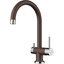 Смеситель с подключением к фильтру для воды — современная модель, которая облегчает быт. Вместо двух соединений с водопроводом у таких вариантов их три, а трубка, по которой идет отфильтрованная вода, находится внутри крана. Чуть дальше основного отверстия, через которое подается поток в раковину, расположено отверстие поменьше — для питьевой воды.