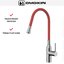 Высота излива — один из важнейших параметров, которые необходимо учитывать при выборе кухонного смесителя. Высотой называется расстояние от поверхности, на которой установлен смеситель, до его носика, то есть это, по сути, длина струи воды. Подбирать модель по высоте следует так, чтобы в раковину без труда помещались любые емкости, которыми вы пользуетесь, включая большие кастрюли и высокие вазы, а вода при ударе о дно раковины не разбрызгивалась во все стороны. Чем больше высота излива, тем глубже должна быть раковина.
