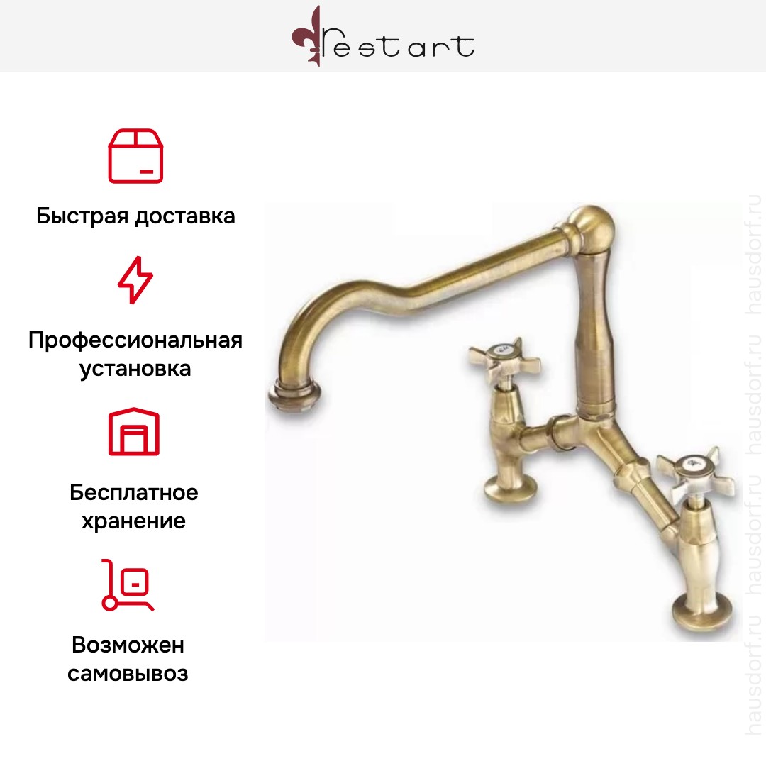 Латунный смеситель RBR 039 — это изысканность, стиль и комфорт использования. Эргономичные ручки обладают плавным ходом и не соскальзывают при поворачивании. Элегантные формы и надежные материалы — одни из преимуществ смесителей Restart.