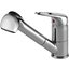 Внутри крана помещается шланг, который можно растянуть, чтобы достать струей воды до второй чаши мойки или тщательно сполоснуть посуду.