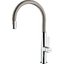 Выходит в титановой отделке и выглядит словно изделие с металлическим оттенком — плавные, сдержанные линии и ровная поверхность благодаря PVD-покрытию. Высокий поворотный излив подчеркивает вертикальную протяженность корпуса и оставляет пространство над раковиной, а сдержанная палитра делает прибор заметным, но не навязчивым в интерьере.