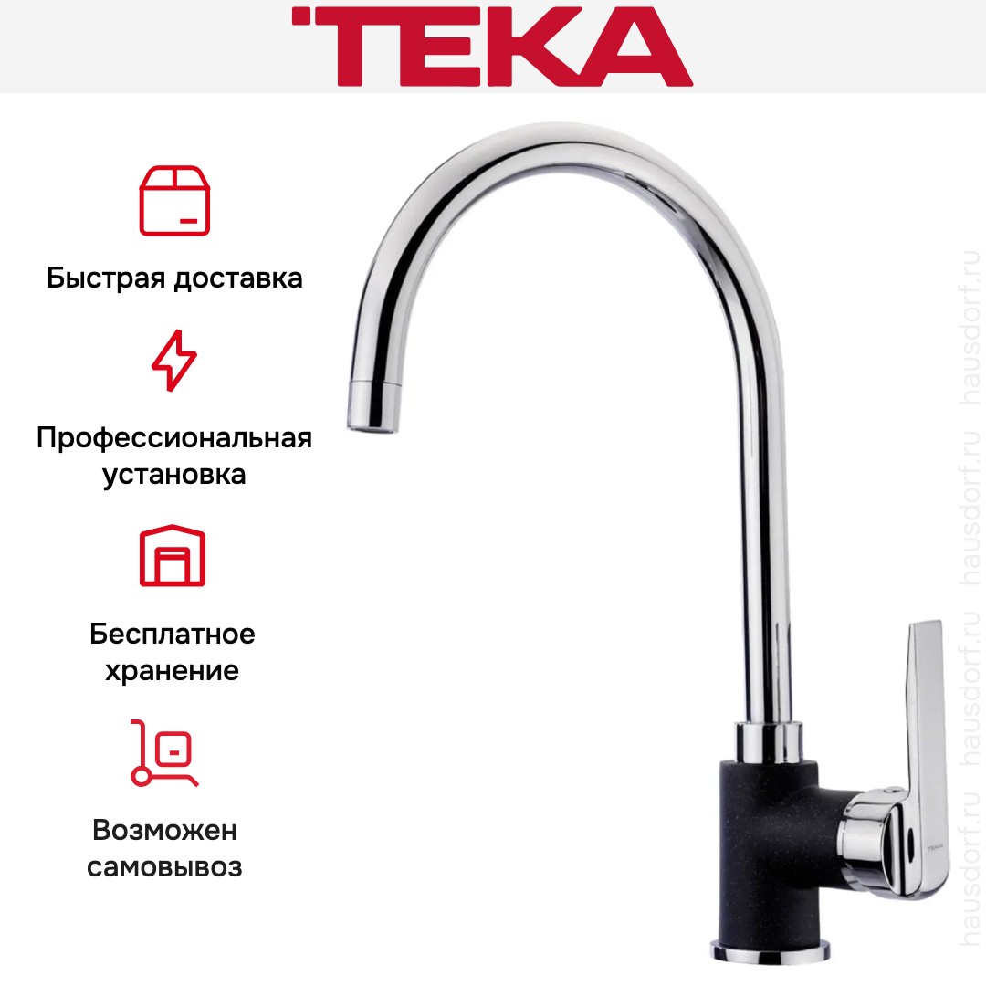 Смеситель Teka IN 995 Carbon — стильное решение для современной кухни с выразительным матовым черным покрытием и продуманной эргономикой. Он сочетает визуальную сдержанность и практичность, становясь акцентом интерьера без лишней вычурности. Материал корпуса из нержавеющей стали обеспечивает прочность и долговечность, а внешнее покрытие из тeгранита придает тактильную мягкость и устойчивость к пятнам. Такое сочетание делает прибор надежным в быту и удобным в уходе, ведь поверхность дольше сохраняет аккуратный вид.
