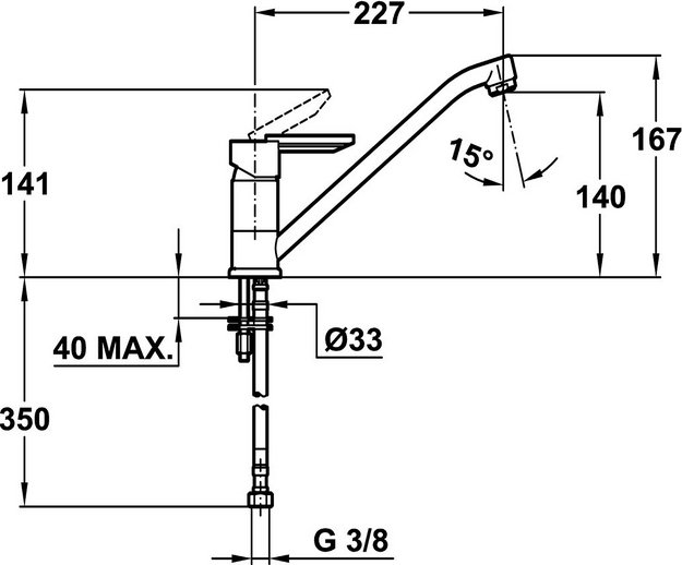 Высота излива — один из важнейших параметров, которые необходимо учитывать при выборе кухонного смесителя. Высотой называется расстояние от поверхности, на которой установлен смеситель, до его носика, то есть это, по сути, длина струи воды. Подбирать модель по высоте следует так, чтобы в раковину без труда помещались любые емкости, которыми вы пользуетесь, включая большие кастрюли и высокие вазы, а вода при ударе о дно раковины не разбрызгивалась во все стороны. Чем больше высота излива, тем глубже должна быть раковина.
