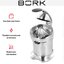 Соковыжималка BORK Z800 подходит для получения сока из всех видов цитрусовых, а также плодов граната. Комбинация свойств механического пресса и электрического привода позволяет приготавливать напиток без особых усилий. Эта стационарная модель станет статусным дополнением интерьера. Компактное устройство высотой 45 см в литом металлическом корпусе выглядит очень стильно. Его дизайн был удостоен одной из самых авторитетных международных премий RedDot Design Award. Кнопка включения устройства расположена на корпусе. Универсальная конструкция конуса для отжима позволяет отжать сок до последней капли. Сок стекает в чашу и проходит через два стальных фильтра для мякоти, а затем по желобу попадает в стакан. Для отключения устройства достаточно поднять рычаг. Конструкция легко разбирается. Все съемные детали можно промыть под струей теплой воды с моющим средством.