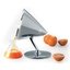 Соковыжималка для цитрусовых позволяет получить сок из лимонов, лаймов, апельсинов. Их достаточно разрезать пополам, поместить разрезом вниз на ребристый конус-наконечник и удерживать вручную или с помощью пресса. При включении прибора конус вращается, сок отжимается и стекает в контейнер.
