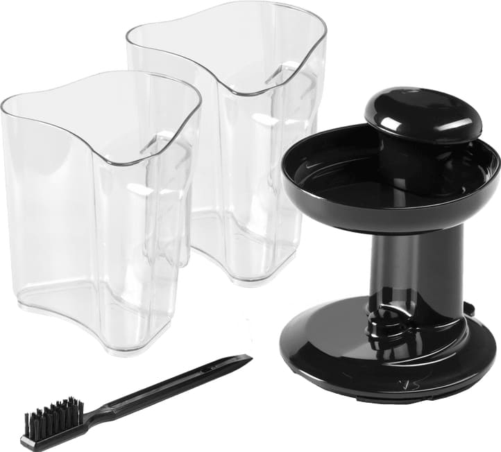 Щеточка для чистки, которая позволяет продлить срок службы прибора — принадлежность любой соковыжималки. Она необходима для очистки сеточки фильтра, которая легко забивается жмыхом. Щеточки с густой щетиной позволяют очистить различные насадки, решетку шнековой соковыжималки и другие детали.