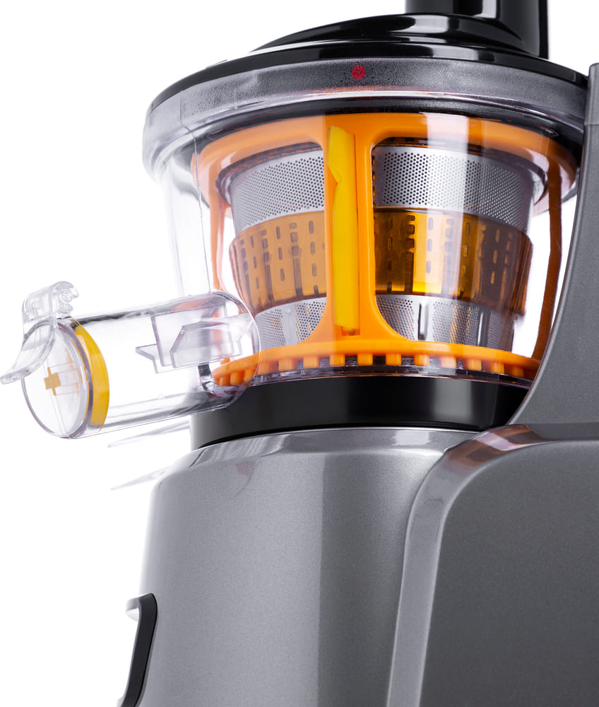 Дополнительные решения повышают надёжность и безопасность техники. Сепаратор для пены улучшает прозрачность сока, а индикатор уровня подскажет, когда пора остановить подачу. Защита от случайного включения и функция защиты от перегрузки предохраняют мотор и продлевают срок службы. Прорезиненные ножки обеспечивают устойчивость, длина сетевого шнура 1.2 м даёт свободу размещения, а комплектный толкатель гарантирует безопасную подачу продуктов.