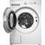 Выглядит сдержанно и функционально: корпус белого цвета с фурнитурой того же тона, дизайн Logic подчёркивает простую геометрию. Это отдельностоящая фронтальная модель с загрузочным люком диаметром 31 см, высотой 85 см, шириной 59.5 см и глубиной 57.2 см — габариты оптимизированы под помещение, где важны вместительность и удобство доступа.
