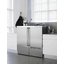 Наиболее распространенный и несложный в установке способ — размещение стиральной машины под столешницей, когда фронтальная часть не скрыта за мебельным фасадом. Такое размещение не составляет труда благодаря стандартной ширине 60 см у большинства моделей. Столешница в этом случае должна располагаться на высоте около 85-90 см, лучшим материалом изготовления для нее считается натуральный или искусственный камень, меньше всего подверженный воздействию влаги.