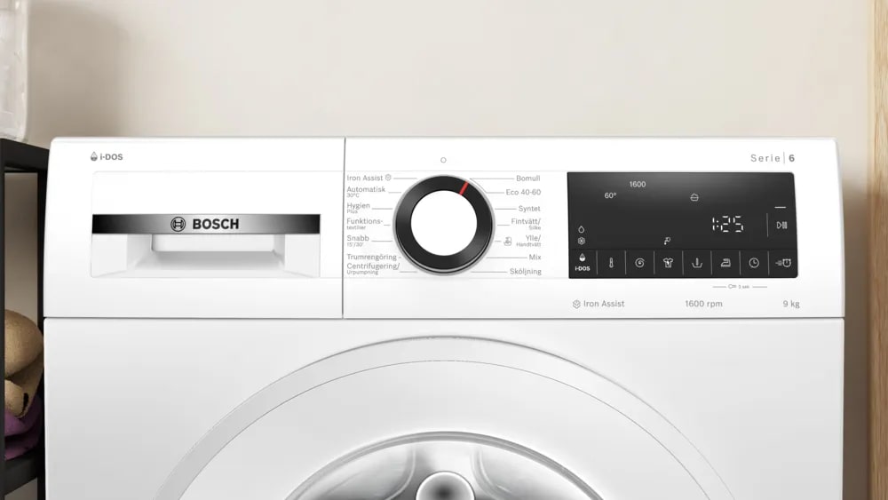 Сенсорная система дозирования моющего средства i-DOS в стиральных машинах Bosch с фронтальной загрузкой служит для точного автоматического определения количества моющего средства. Оптимальный объем порошка или геля для стирки определяется на основании данных, полученных при помощи системы датчиков-сенсоров. В числе основных параметров стирки, рассчитанных при помощи этих датчиков — объем белья в барабане, тип ткани, степень загрязненности белья и жесткость воды.