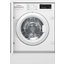 Полностью встраиваемые стиральные машины — один самых распространенных типов, особенно в условиях ограниченного пространства. Они размещаются в тумбах, скрываясь за мебельными фасадами и позволяя таким образом сохранить единство стиля. Вместимость этих устройств варьируется в пределах от 5 до 12 кг белья. Высота их составляет 84-85 см, что является стандартным значением, ширина равна 60 см, глубина же может быть различной. Размещают подобные модели обычно в кухне, а не в ванной, поскольку та имеет меньшую площадь.