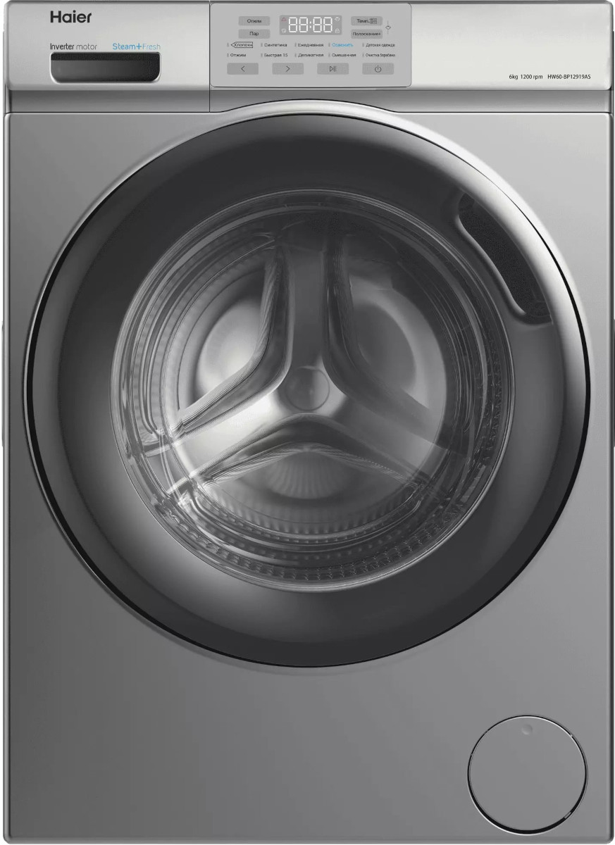 Стиральная машина Хайер HW60-BP12919AS выпущена в стандартной конфигурации — устанавливается отдельно, поэтому рекомендуем заранее выделить для нее место в квартире. Благодаря классической фронтальной загрузке она привычна и удобна даже для тех, кто не очень разбирается в технике. За счет небольшой глубины данную модель предпочитают владельцы небольших квартир, студий. В барабан помещается не так много вещей за один раз, но тем, кто не любит копить вещи или просто мало стирает, будет достаточно. Максимальная загрузка: 6 кг.