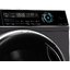 Стиральная машина Haier HW80-B14979D выполнена в темно-сером корпусе с черным люком и фурнитурой, что придает ей современный и спокойный вид. Глубина всего 42,5 см делает прибор идеальным вариантом для узких ванных или компактных прачечных. Высота 85 см и ширина 59,5 см соответствуют стандартам для отдельностоящей установки, поэтому устройство легко размещается в нишах под столешницей или рядом с мебелью. LED-дисплей, сенсорные кнопки и поворотный программатор смотрятся стильно и обеспечивают понятное управление.