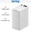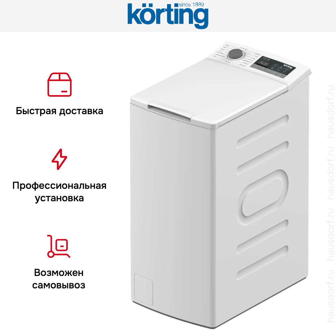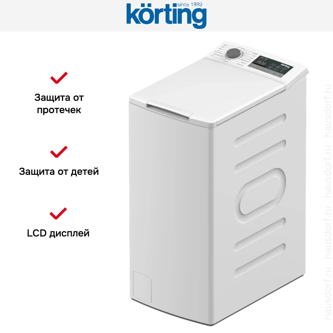 Стиральная машина Korting KWMT 1488 I — компактный прибор с вертикальной загрузкой. Модель выполнена в нейтральном белом цвете и снабжена серой фурнитурой. Благодаря своим пропорциям она прекрасно впишется в ограниченное пространство ванной комнаты даже совсем небольшой площади. Высота 87,5 см, ширина 40 см и глубина 60 см делают её удобным решением для узких ниш, где фронтальная загрузка затруднена. Верхняя крышка открывается мягко, что уменьшает шум и износ, а плавный дизайн панели с подсветкой делает управление понятным и приятным.
