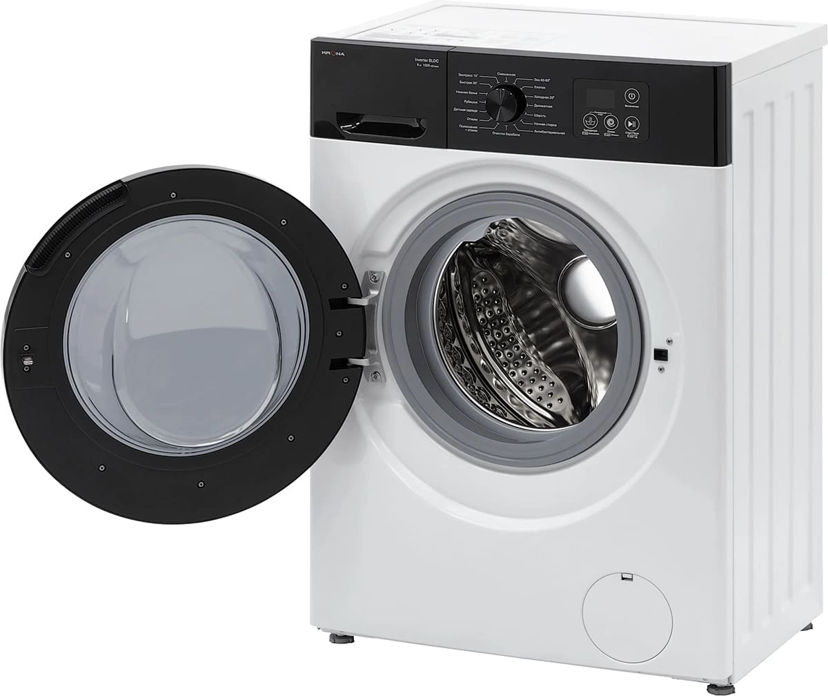 Стиральная машина Krona Rhene White 1000-6K-WM представляет собой продуманное сочетание эстетики и практичности: строгий белоснежный корпус в стиле OPTIMA гармонирует с чёрной декоративной отделкой люка и фурнитуры, боковые стенки с технологией AntiVibration снижают вибрации и обеспечивают стабильность при отжиме, а широкий угол открытия дверцы до 130° и диаметр створки 42,5 см создают удобство при загрузке белья. Компактные габариты—высота 84,5 см, ширина 59,8 см, глубина 44,5 см (габариты ВхШхГ 89,5×59,8×44,5 см)—позволяют установить аппарат в ограниченном пространстве, при этом глубина с открытой дверцей составляет 85 см. Передний тип загрузки рассчитан на 6 кг белья, внутренний объём барабана 39,5 л, сам барабан выполнен из нержавеющей стали, а бак — из прочного полипропилена, что гарантирует долговечность и гигиеничность эксплуатации. Управление реализовано в виде комбинированной панели: поворотный программатор дополнен сенсорными кнопками и ярким LED-дисплеем, на котором отображаются скорость отжима, время до окончания цикла, индикация блокировки люка и режима защиты от детей, а также статусы включения и выключения. Модель предлагает 16 режимов работы, в том числе стандартные программы «Хлопок» и «Смешанное бельё», а также полный набор деликатных циклов — ручная стирка, шерсть, режим для рубашек, деликатный отжим, тонкое бельё, опция без отжима и акрил; для быстрого обновления гардероба доступны экономичная экспресс-программа и супербыстрая стирка 30/15 минут. Для заботы о здоровье предусмотрены гигиеническая стирка против аллергии, специальный режим для детских вещей и отдельная дополнительная программа для нижнего белья, а поддержание чистоты прибора реализовано через функцию «гигиена прибора» и программу очистки барабана. Функционал дополняют возможность выбора температуры, отложенный старт от 1 до 24 часов, сигнал об окончании и ночной режим для тихой работы, при этом двигатель — инверторного типа — обеспечивает экономичное, плавное и менее шумное вращение барабана. Энергетические показатели впечатляют: класс энергопотребления A+++ и класс стирки A, расход электроэнергии за цикл составляет 0,486 кВт·ч, годовой показатель 48,6 кВт·ч, расход воды 43 л за цикл и около 4300 л в год; номинальная мощность прибора 1,9 кВт, напряжение 220 В, частота 50-60 Гц. Отжим выполняется со скоростью до 1000 об/мин с возможностью выбора или полного отключения этой функции, что позволяет бережно обращаться с деликатными тканями; класс отжима B. Практические детали включают выдвижной дозатор с тремя отделениями для моющих средств, длину сетевого кабеля 130 см, сливной шланг 150 см и заливной 120 см, регулировочные ножки для выравнивания корпуса, защиту от детей (блокировка панели), систему предотвращения перелива, защитную блокировку загрузочного люка, контроль пенообразования и систему обнаружения неисправностей для удобства обслуживания и безопасности. Уровень шума при стирке составляет 62 дБ, при отжиме — 75 дБ, а общий вес устройства 47,5 кг делает монтаж простым и предсказуемым. Этот прибор станет отличным решением для домашнего использования: он сочетает современный дизайн, богатый набор программ и комфортную эксплуатацию, что делает работу с бельём более быстрой, бережной и экономичной.