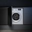 Полностью встраиваемые стиральные машины — один самых распространенных типов, особенно в условиях ограниченного пространства. Они размещаются в тумбах, скрываясь за мебельными фасадами и позволяя таким образом сохранить единство стиля. Вместимость этих устройств варьируется в пределах от 5 до 12 кг белья. Высота их составляет 84-85 см, что является стандартным значением, ширина равна 60 см, глубина же может быть различной. Размещают подобные модели обычно в кухне, а не в ванной, поскольку та имеет меньшую площадь.