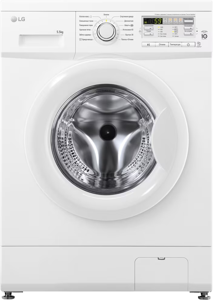Стиральная машина Лджи F10B8MD выпущена в стандартной конфигурации — устанавливается отдельно, поэтому рекомендуем заранее выделить для нее место в квартире. Благодаря классической фронтальной загрузке она привычна и удобна даже для тех, кто не очень разбирается в технике. За счет небольшой глубины данную модель предпочитают владельцы небольших квартир, студий. В барабан помещается не так много вещей за один раз, но тем, кто не любит копить вещи или просто мало стирает, будет достаточно. Максимальная загрузка: 5.5 кг.