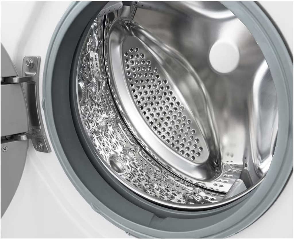 Цвет этой стиральной машинки — белый. Мотор: Инверторный. Благодаря ему машина работает тише, потребляет меньше электроэнергии, сохраняя при этом необходимую мощность.