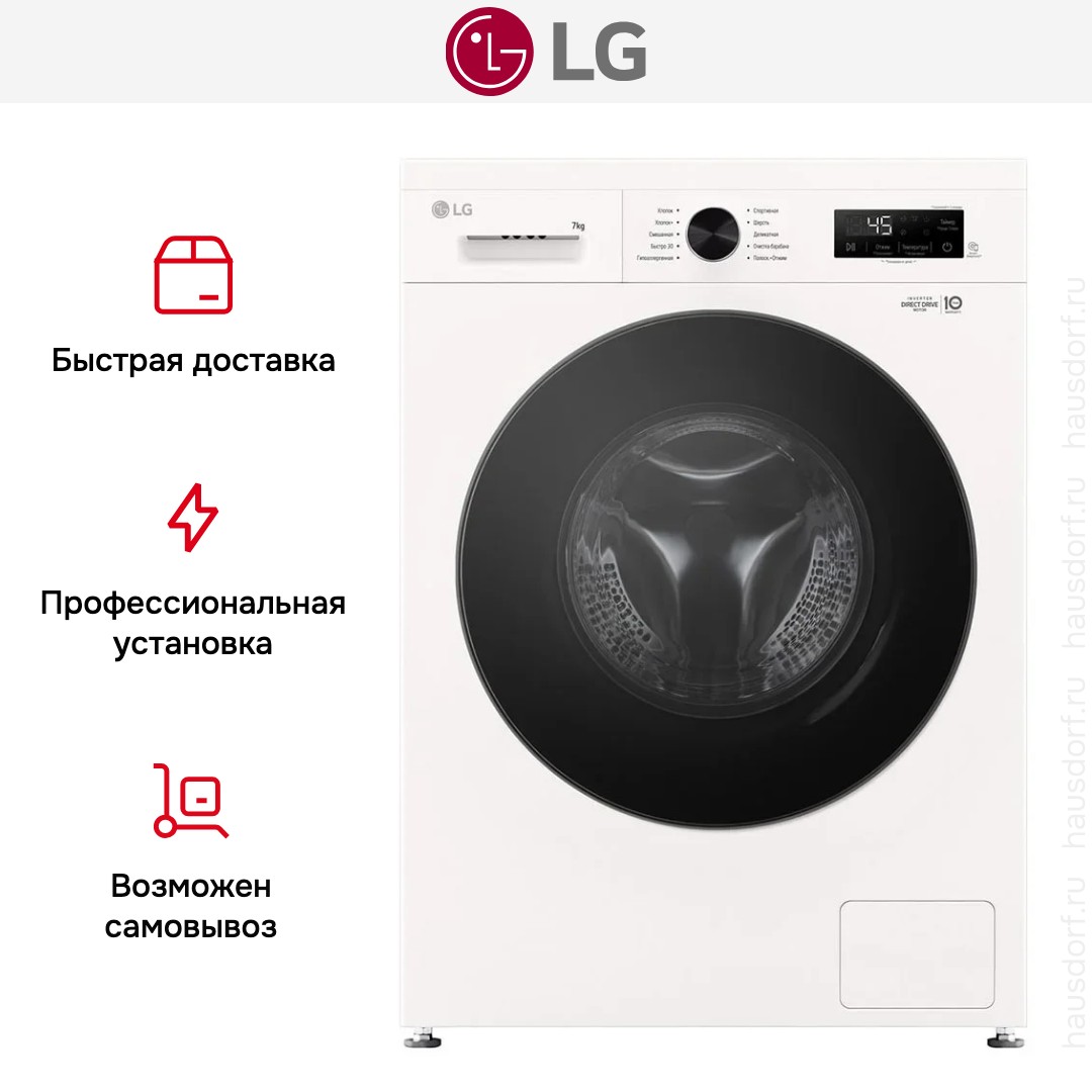 Цвет этой стиральной машинки — белый. Мотор: Инверторный. Благодаря ему машина работает тише, потребляет меньше электроэнергии, сохраняя при этом необходимую мощность.