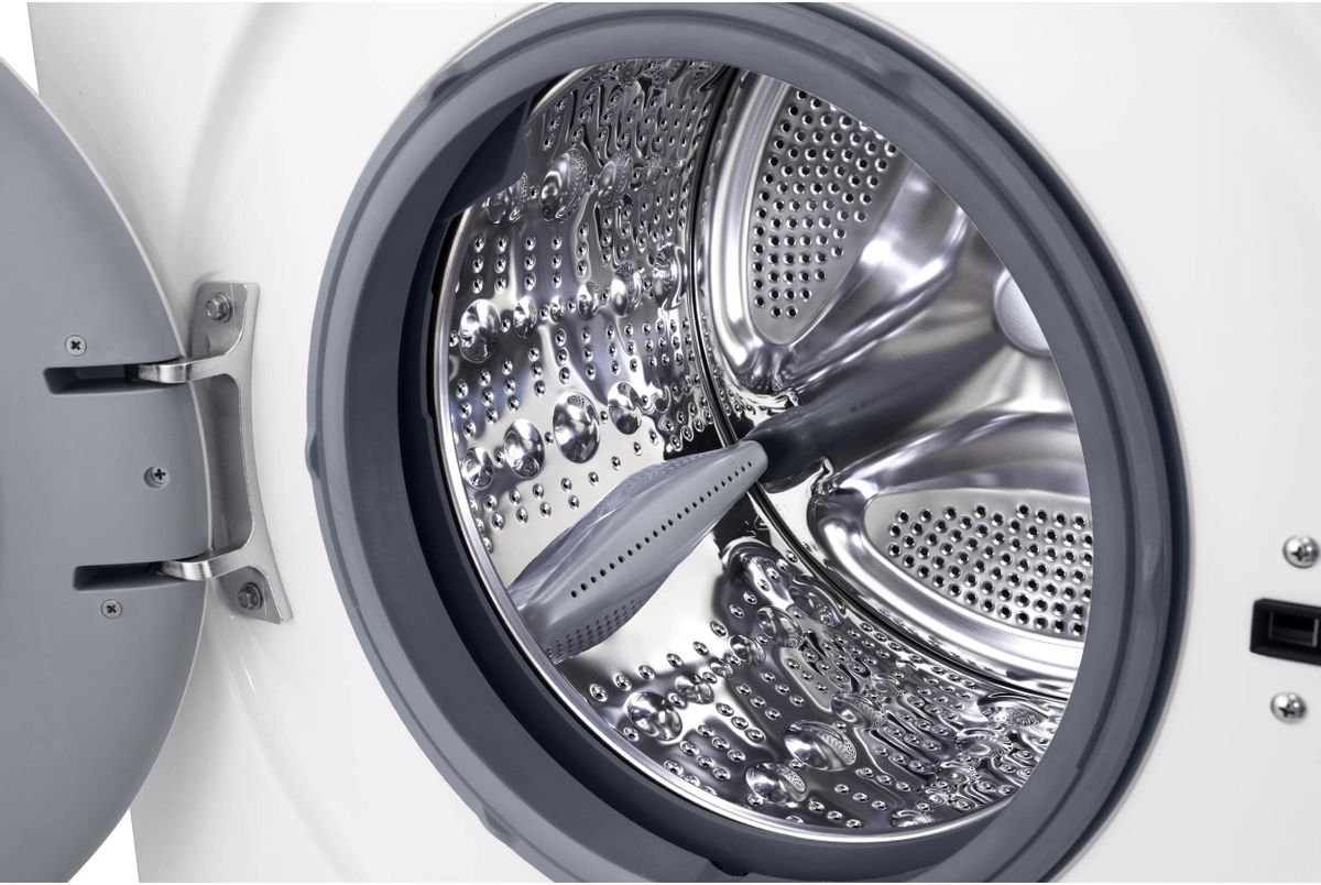 Цвет этой стиральной машинки — белый. Мотор: Инверторный. Благодаря ему машина работает тише, потребляет меньше электроэнергии, сохраняя при этом необходимую мощность.