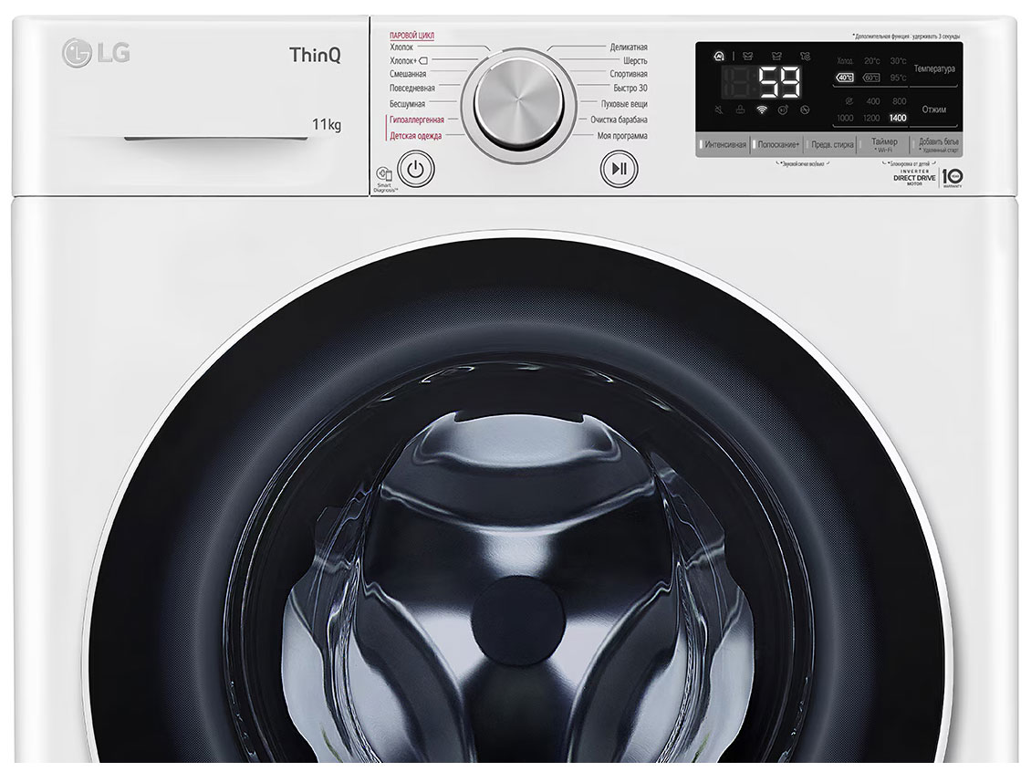 Стиральная машина LG TW4V5RS2S — стильное и функциональное решение для дома, созданное чтобы сочетать продуманный внешний вид и современные технологии в одном корпусе. Отдельностоящая модель с фронтальной загрузкой привлекает внимание сдержанным серым цветом и контрастной черной дверцей диаметром 30 см, а нержавеющий барабан не только надежен, но и бережно относится к ткани благодаря пузырьковой поверхности. Габариты 85×60×56.5 см обеспечивают удобство размещения в стандартных нишах, при этом глубина с открытой дверцей составляет 110 см, а размеры в транспортировочной упаковке — 89×66×66 см. Вместимость до 10,5 кг пригодится большим семьям и тем, кто стирает объемные вещи, включая изделия из пуха и спортивную экипировку. Управление реализовано по современной схеме: комбинированный поворотный программатор и сенсорные кнопки дополняются ярким LED-дисплеем, есть индикация блокировки дверцы и функция старт/пауза для оперативного вмешательства. Инверторный мотор обеспечивает высокий ресурс и экономичность, а класс энергопотребления A и расход 1,35 кВт·ч за цикл говорят о рациональном потреблении электричества; расход воды на цикл составляет 45 л. Скорость отжима до 1400 об/мин с возможностью выбора или полного отключения дает контроль над влажностью белья после завершения программы, класс отжима A гарантирует эффективное удаление влаги. В арсенале 14 режимов, среди которых стандартные Хлопок и Смешанное белье, деликатные «Ручная стирка» и «Шерсть», экспресс-циклы в том числе супербыстрая 30/15 минут и экономичные короткие программы, а также дополнительные варианты: Полоскание + отжим, Хлопок+Быстро 14 мин, Моя программа и Полоскание +. Для заботы о здоровье предусмотрена гигиеническая функция против аллергии и технология обработки паром Steam™, включая паровую обработку до основного цикла, что улучшает удаление загрязнений и запахов. Набор опций включает автоперезапуск после сбоя питания, защиту от скачков, блокировку от детей, контроль пенообразования, систему обнаружения дисбаланса и автоматическое взвешивание для оптимизации расхода воды и времени. Дозагрузку позволяет осуществлять электромагнитная блокировка люка с возможностью разблокировки, а программа очистки барабана поддерживает внутренние поверхности в порядке. Модель оснащена функциями управления интенсивностью, отсрочки окончания и сигналом по завершении, что делает эксплуатацию гибкой и удобной. Уровни шума при работе достаточно низкие — 53 дБ в режиме стирки и 74 дБ при отжиме, а прочный корпус и регулируемые ножки обеспечивают стабильность даже при высокой нагрузке; масса устройства 61 кг, масса в упаковке 64 кг. Электрические параметры соответствуют бытовым стандартам 220-240 В и частоте 50-60 Гц. Благодаря компактной, но вместительной конструкции, продуманным программам и набору защитных функций такой прибор станет надежным помощником в уходе за текстилем, экономя время и ресурсы при каждом цикле.