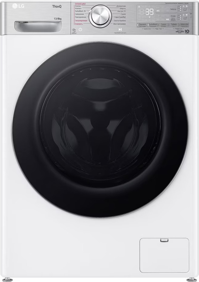 Стиральная машина Лджи F4V9LD2W выпущена в стандартной конфигурации — устанавливается отдельно, поэтому рекомендуем заранее выделить для нее место в квартире. Благодаря классической фронтальной загрузке она привычна и удобна даже для тех, кто не очень разбирается в технике. В барабан помещается большое количество белья, что подойдет большим семьям или тем, кто часто стирает объемные вещи — постельное белье, верхнюю одежду. Максимальная загрузка: 13 кг.