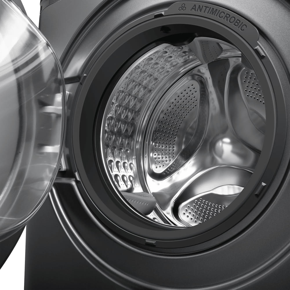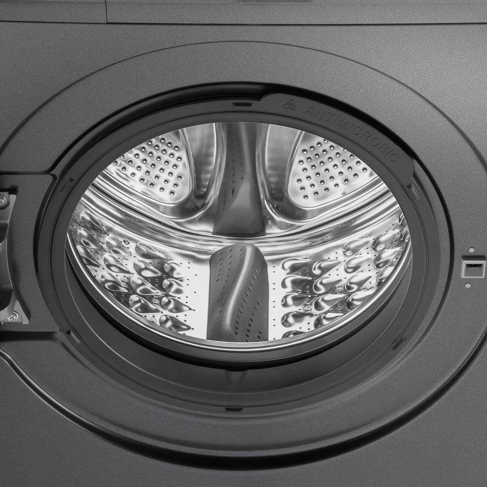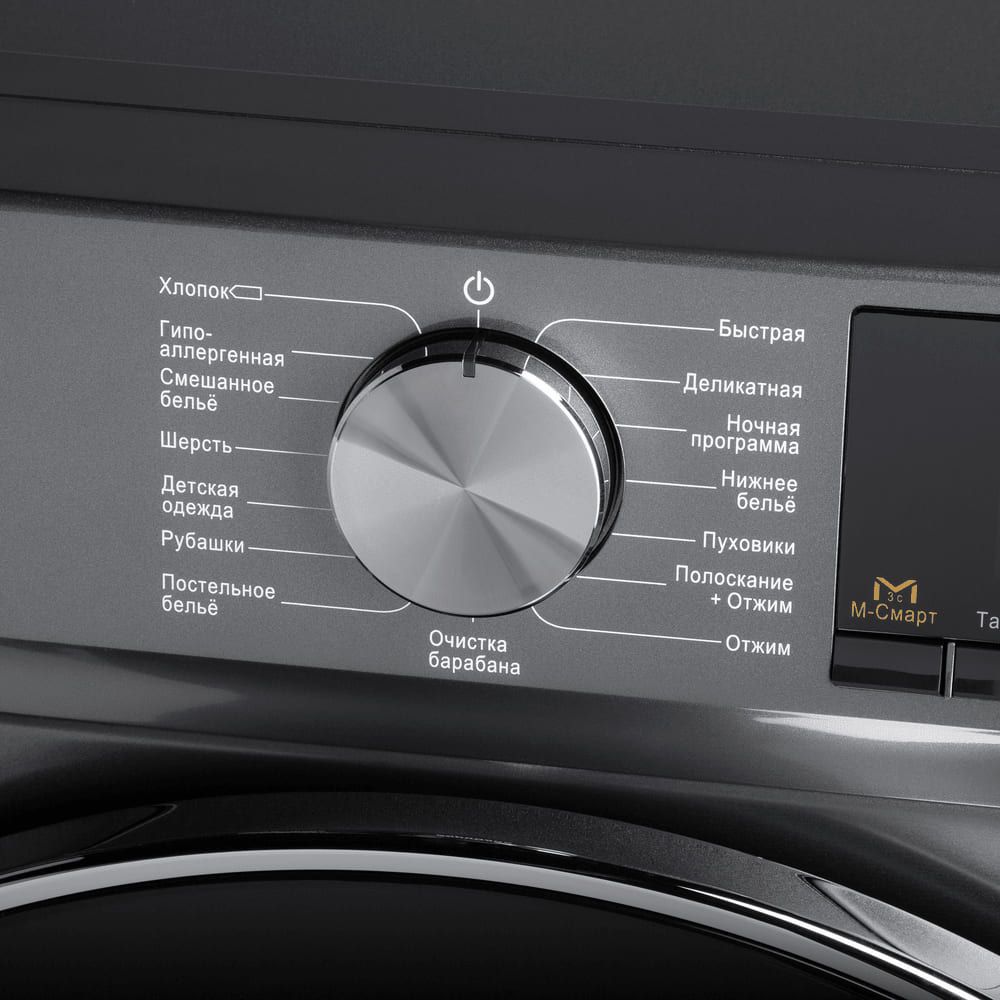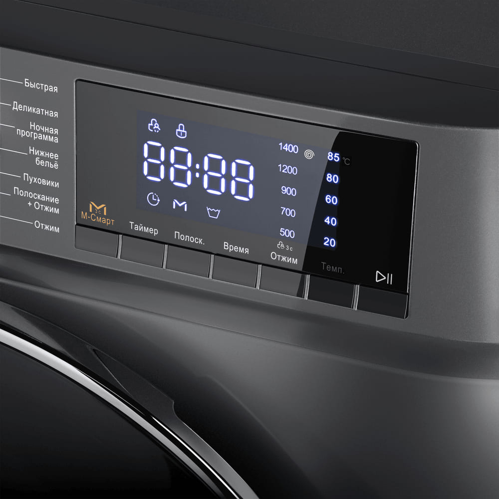 Цвет этой стиральной машинки — графит. Мотор: Инверторный. Благодаря ему машина работает тише, потребляет меньше электроэнергии, сохраняя при этом необходимую мощность.