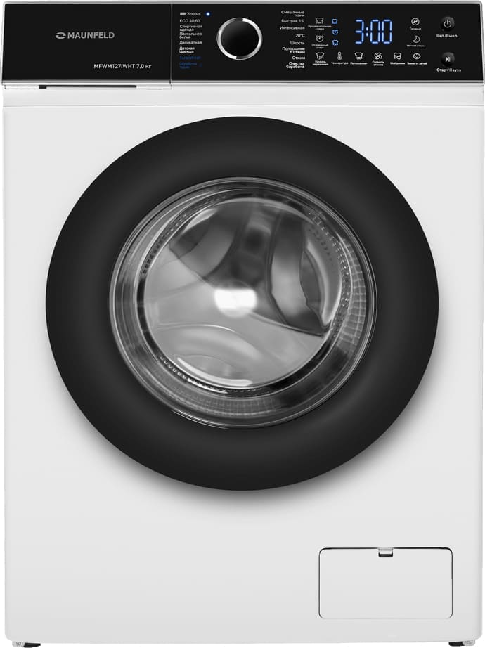 Стиральная машина Маунфилд MFWM127IWHT выпущена в стандартной конфигурации — устанавливается отдельно, поэтому рекомендуем заранее выделить для нее место в квартире. Благодаря классической фронтальной загрузке она привычна и удобна даже для тех, кто не очень разбирается в технике. За счет небольшой глубины данную модель предпочитают владельцы небольших квартир, студий. Вместительность барабана средняя, поэтому ее хватит и для одиночек, и для семей с детьми. Максимальная загрузка: 7 кг.