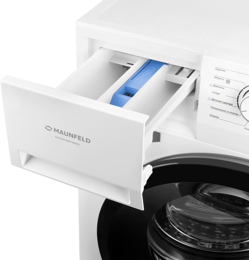 Стиральная машина Маунфилд MFWM148STWH02 выпущена в стандартной конфигурации — устанавливается отдельно, поэтому рекомендуем заранее выделить для нее место в квартире. Благодаря классической фронтальной загрузке она привычна и удобна даже для тех, кто не очень разбирается в технике. За счет небольшой глубины данную модель предпочитают владельцы небольших квартир, студий. Вместительность барабана средняя, поэтому ее хватит и для одиночек, и для семей с детьми. Максимальная загрузка: 8 кг.
