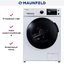 Maunfeld MFWM1586WH — полноразмерная отдельно стоящая стиральная машина с функцией сушки высотой 85 см и шириной 60 см. Модель с фронтальной загрузкой способна выстирать за один рабочий цикл до 8 кг и высушить до 6 кг белья. Металлический корпус белого цвета удачно сочетается с люком большого диаметра, изготовленным из черного стекла. Материал изготовления бака — нержавеющая сталь, а барабан выполнен из термостойкого и безопасного пластика ECO CARBON.