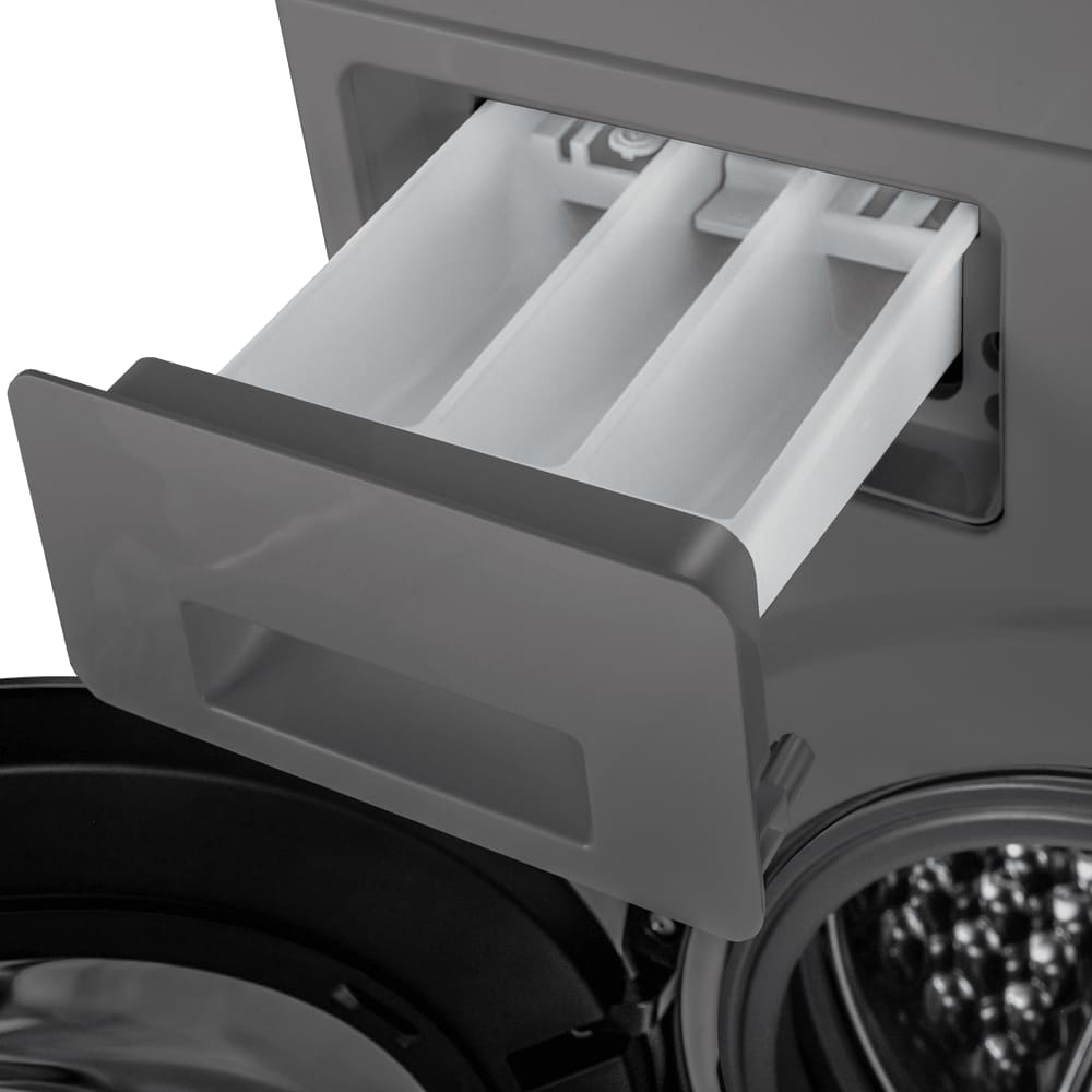 Эта модель — комбинация стирки и сушки, что полезно людям, которые не могут или не хотят приобретать отдельно сушильную машину, при этом в квартире нет балкона или лоджии, чтобы с комфортом сушить одежду на веревках. Вы можете отложить запуск, если хотите сэкономить на тарифах и включить машинку ночью, либо если планируете развесить белье сразу после возвращения работы и не ждать, пока закончится цикл. На панели управления отображаются разнообразные индикаторы, чтобы было проще следить за процессом, например: необходимости провести очистку прибора, времени до окончания стирки, выбора дополнительных функций, блокировки дверцы, блокировки от детей, сушки, включения и выключения, старт/пауза, отсрочки старта. Скорость отжима достигает 1200 оборотов в минуту.