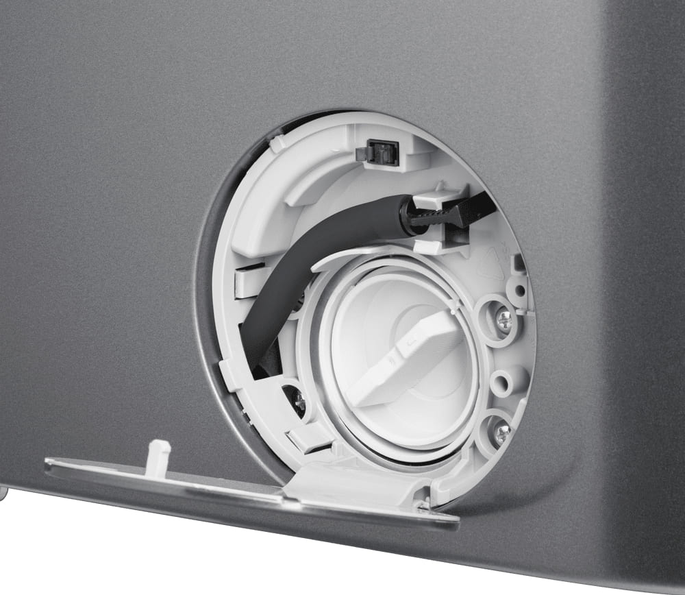 Ряд производителей защищает панель управления акриловым стеклом — синтетически материалом высокой прочности и прозрачности, устойчивым к воздействию влаги и бактерий. Другой выход из этого положения поворотная панель управления — например, в машинах известной швейцарской марки V-Zug. Она легко выдвигается вверх, когда необходимо ввести программу или получить какую-либо информацию. Максимальный угол отклонения от вертикали при этом может составлять 45°. Когда программа выбрана и нажата кнопка Пуск, панель можно вернуть обратно в вертикальное положение.