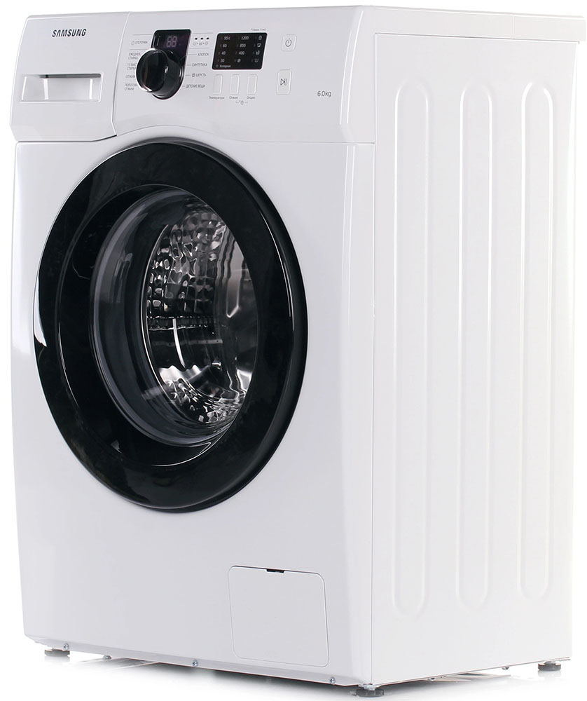 Стиральная машина Самсунг WF 60 F1R2F2W/DLP выпущена в стандартной конфигурации — устанавливается отдельно, поэтому рекомендуем заранее выделить для нее место в квартире. Благодаря классической фронтальной загрузке она привычна и удобна даже для тех, кто не очень разбирается в технике. За счет небольшой глубины данную модель предпочитают владельцы небольших квартир, студий. В барабан помещается не так много вещей за один раз, но тем, кто не любит копить вещи или просто мало стирает, будет достаточно. Максимальная загрузка: 6 кг.