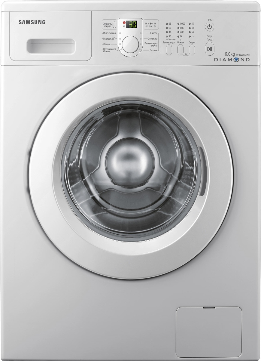 Цвет этой стиральной машинки — белый. В данной модели Samsung используется барабан Diamond.