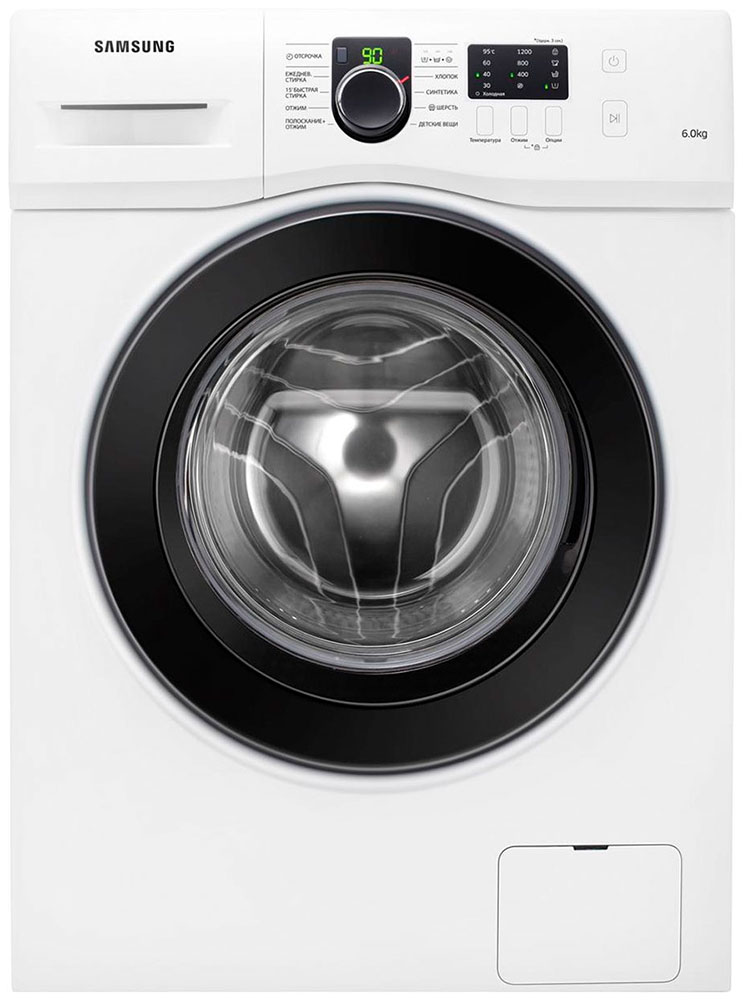 Стиральная машина Самсунг WF60F1R2F2W выпущена в стандартной конфигурации — устанавливается отдельно, поэтому рекомендуем заранее выделить для нее место в квартире. Благодаря классической фронтальной загрузке она привычна и удобна даже для тех, кто не очень разбирается в технике. За счет небольшой глубины данную модель предпочитают владельцы небольших квартир, студий. В барабан помещается не так много вещей за один раз, но тем, кто не любит копить вещи или просто мало стирает, будет достаточно. Максимальная загрузка: 6 кг.