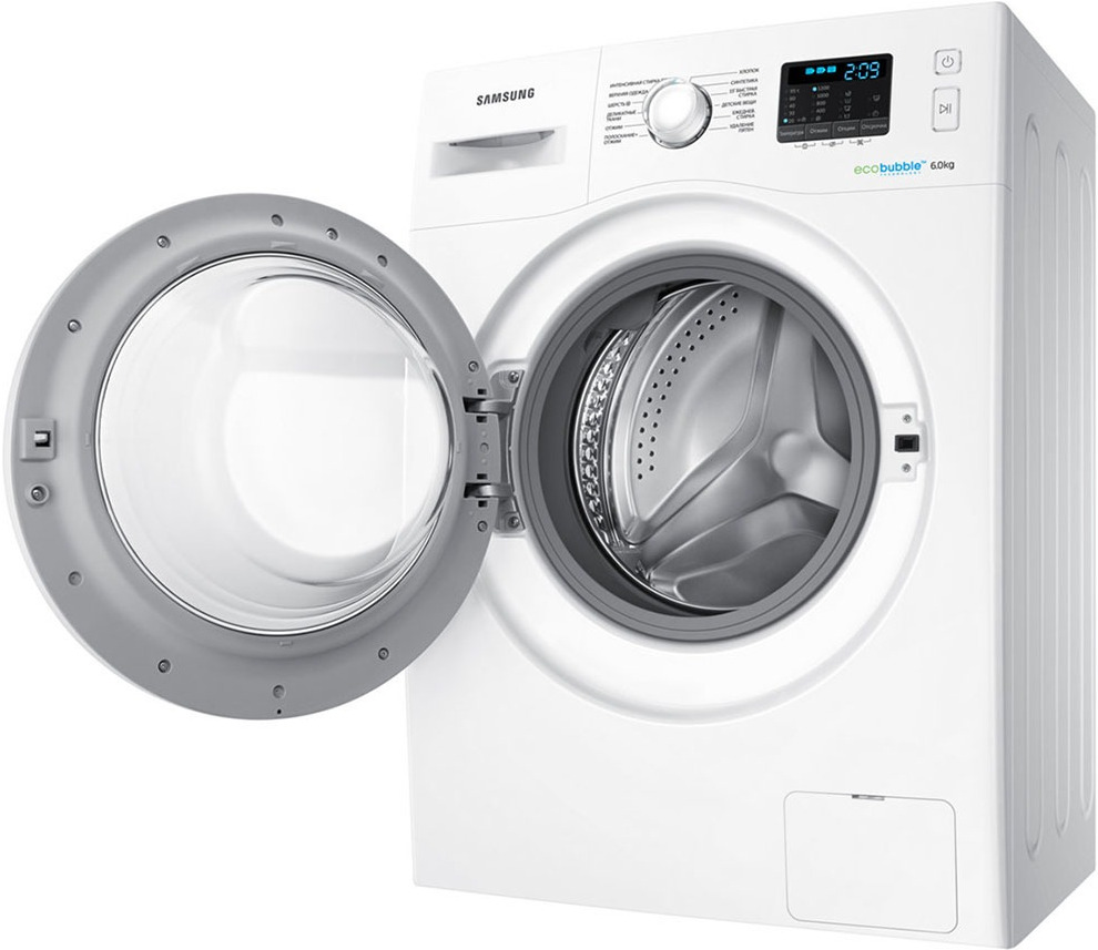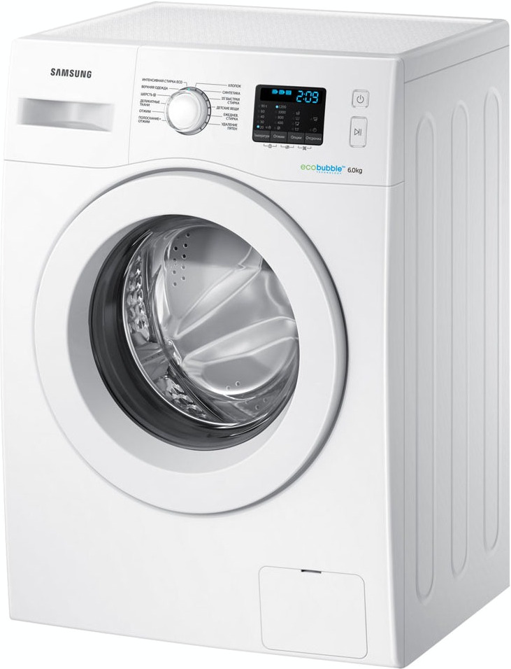 Стиральная машина Самсунг WW 60H2200EW выпущена в стандартной конфигурации — устанавливается отдельно, поэтому рекомендуем заранее выделить для нее место в квартире. Благодаря классической фронтальной загрузке она привычна и удобна даже для тех, кто не очень разбирается в технике. За счет небольшой глубины данную модель предпочитают владельцы небольших квартир, студий. В барабан помещается не так много вещей за один раз, но тем, кто не любит копить вещи или просто мало стирает, будет достаточно. Максимальная загрузка: 6 кг.