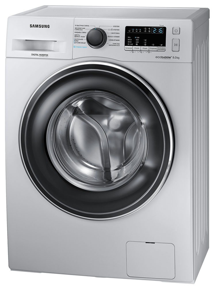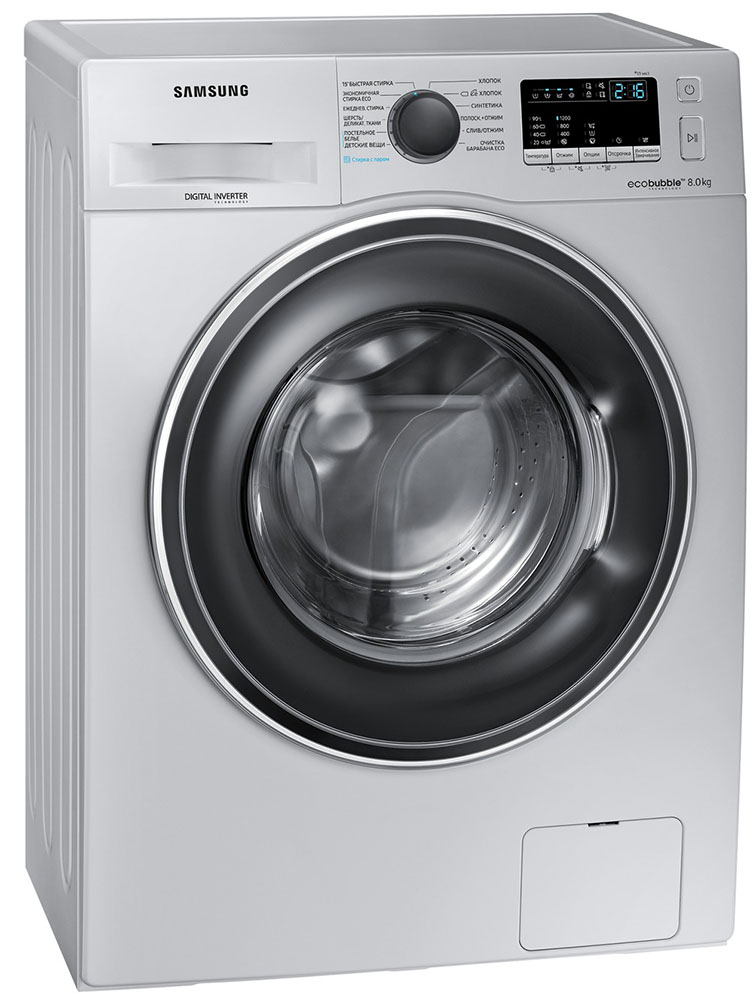 Цвет этой стиральной машинки — серебристый. Мотор: Инверторный. Благодаря ему машина работает тише, потребляет меньше электроэнергии, сохраняя при этом необходимую мощность.