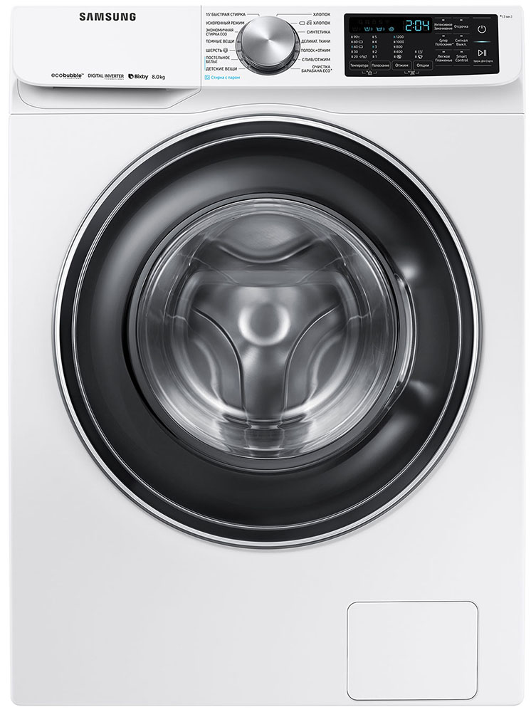 Цвет этой стиральной машинки — белый. В данной модели Samsung используется барабан Swirl. Мотор: Инверторный. Благодаря ему машина работает тише, потребляет меньше электроэнергии, сохраняя при этом необходимую мощность.