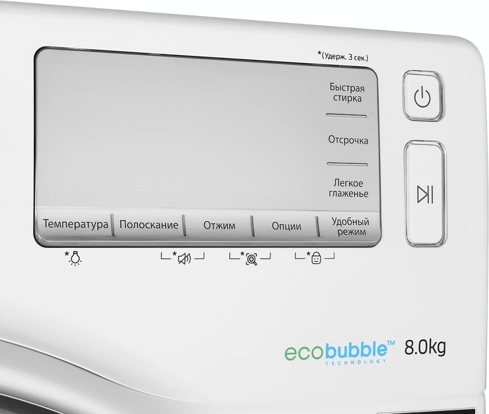 Электронное управление удобно и понятно. Производитель внедрил интеллектуальную систему контроля, с помощью которой данная модель автоматически улучшает все рабочие процессы. В вашем распоряжении: Технология EcoBubble. Для выбора программ используются кнопки, поворотный программатор. Количество режимов для стирки разных типов белья: 14.