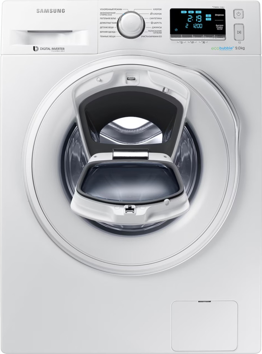 Стиральная машина Самсунг WW 90K6414SW AddWash выпущена в стандартной конфигурации — устанавливается отдельно, поэтому рекомендуем заранее выделить для нее место в квартире. Благодаря классической фронтальной загрузке она привычна и удобна даже для тех, кто не очень разбирается в технике. За счет небольшой глубины данную модель предпочитают владельцы небольших квартир, студий. Вместительность барабана средняя, поэтому ее хватит и для одиночек, и для семей с детьми. Максимальная загрузка: 9 кг.