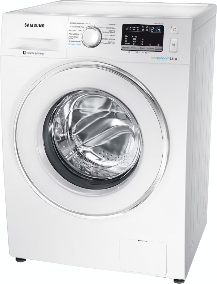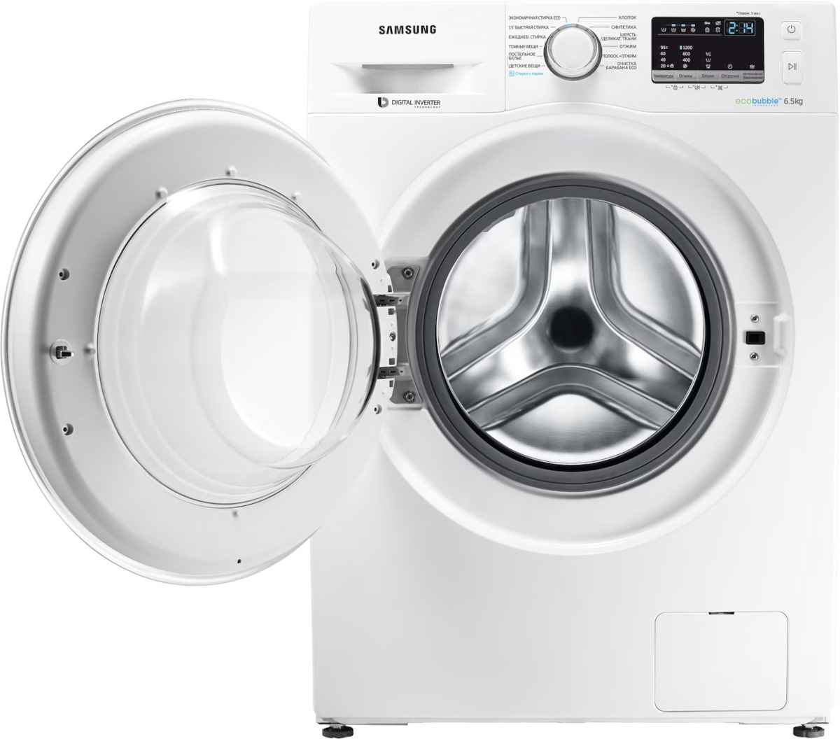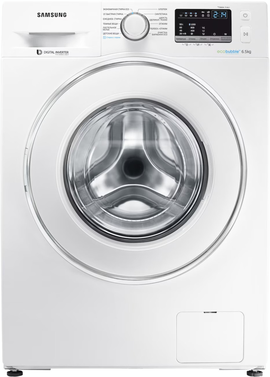 Цвет этой стиральной машинки — белый. В данной модели Samsung используется барабан Diamond. Мотор: Инверторный. Благодаря ему машина работает тише, потребляет меньше электроэнергии, сохраняя при этом необходимую мощность.