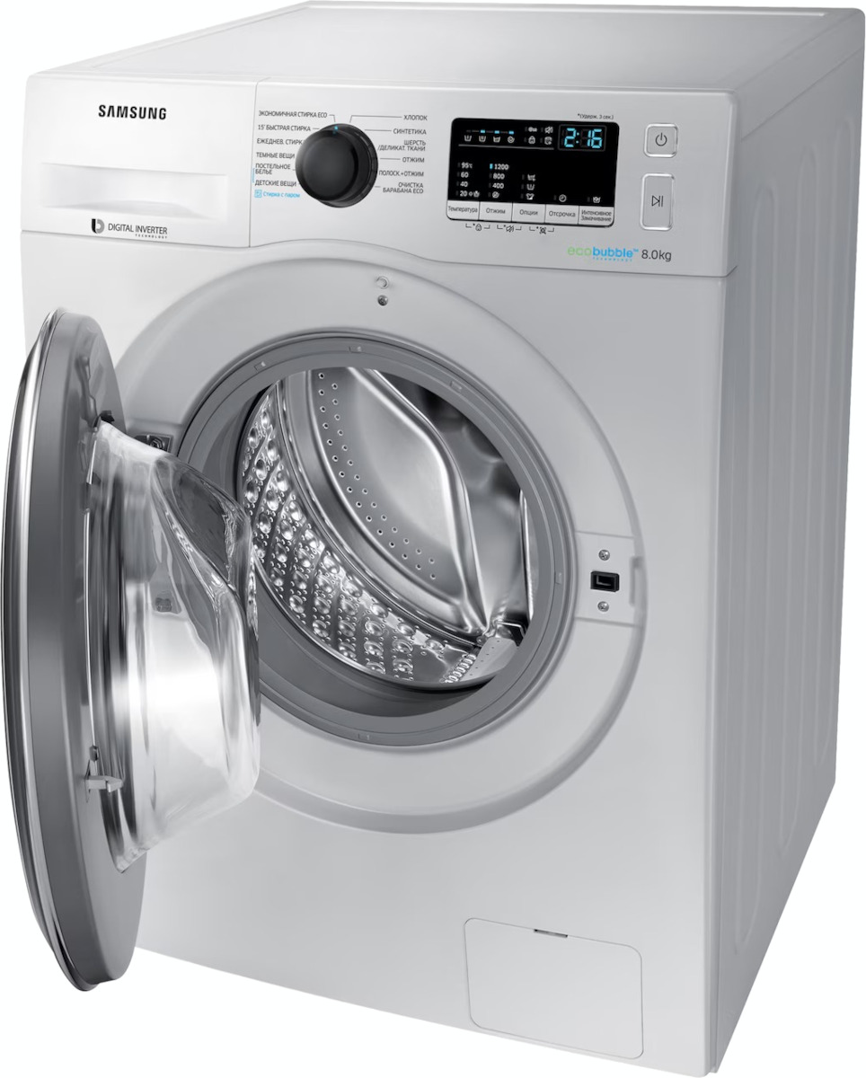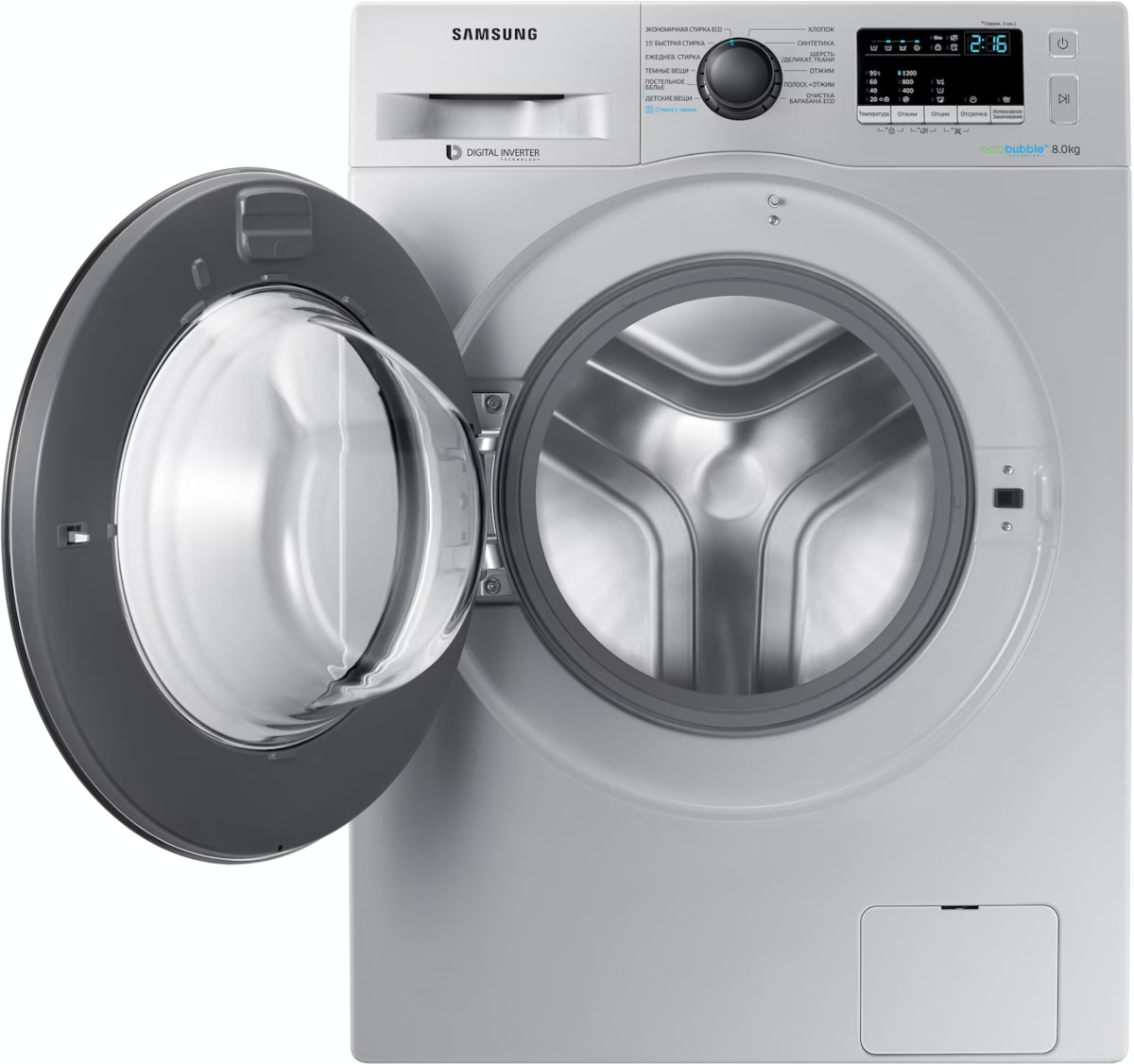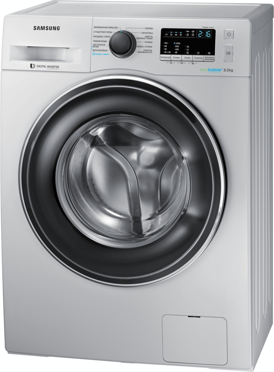 Цвет этой стиральной машинки — серебристый. В данной модели Samsung используется барабан Swirl. Мотор: Инверторный. Благодаря ему машина работает тише, потребляет меньше электроэнергии, сохраняя при этом необходимую мощность.