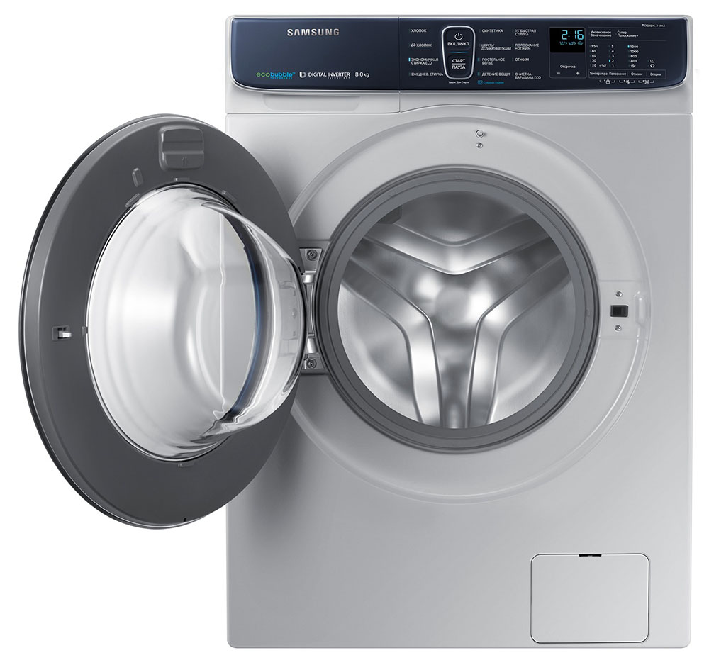 Стиральная машина Самсунг WW80K52E61S выпущена в стандартной конфигурации — устанавливается отдельно, поэтому рекомендуем заранее выделить для нее место в квартире. Благодаря классической фронтальной загрузке она привычна и удобна даже для тех, кто не очень разбирается в технике. За счет небольшой глубины данную модель предпочитают владельцы небольших квартир, студий. Вместительность барабана средняя, поэтому ее хватит и для одиночек, и для семей с детьми. Максимальная загрузка: 8 кг.