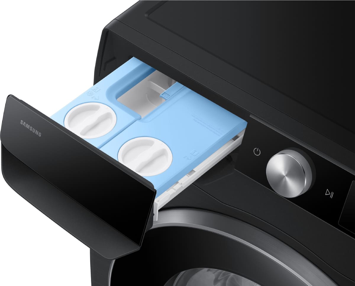 Стиральная машина Самсунг WW90DG6G94LBLD выпущена в стандартной конфигурации — устанавливается отдельно, поэтому рекомендуем заранее выделить для нее место в квартире. Благодаря классической фронтальной загрузке она привычна и удобна даже для тех, кто не очень разбирается в технике. За счет небольшой глубины данную модель предпочитают владельцы небольших квартир, студий. Вместительность барабана средняя, поэтому ее хватит и для одиночек, и для семей с детьми. Максимальная загрузка: 9 кг.